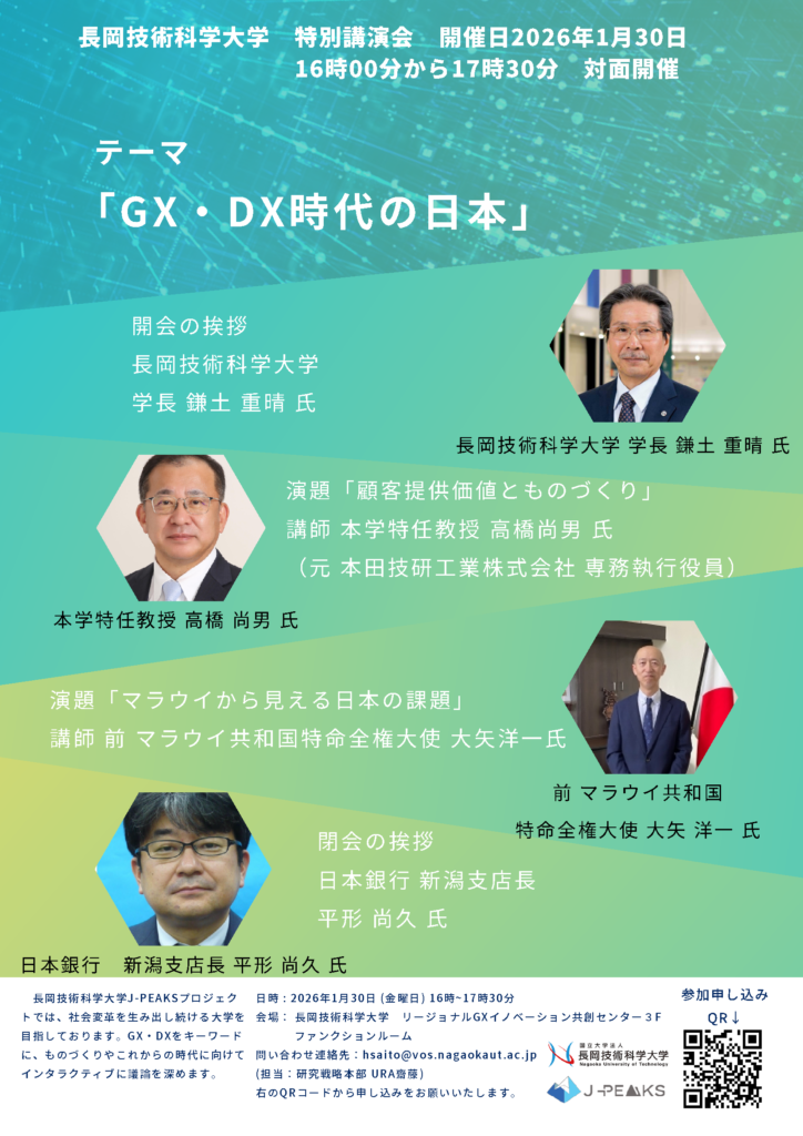 2026年1月30日(金)、J-PEAKS特別講演会「GX・DX時代の日本」を本学リージョナルGXイノベーション共創センター ファンクションルームにて開催しました。